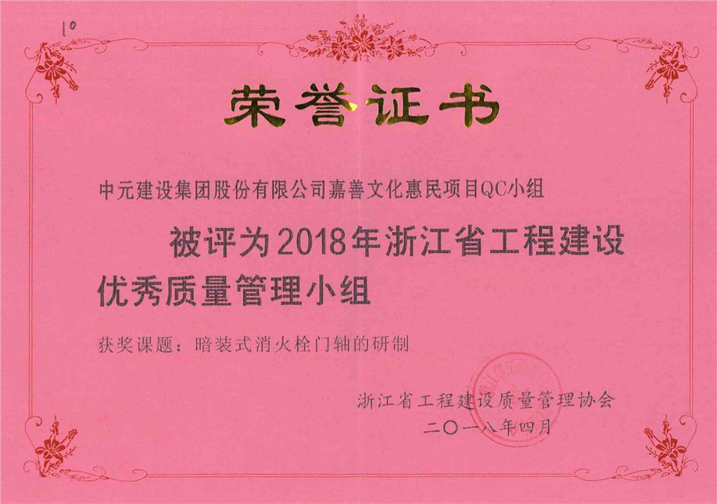 2018年浙江省工程建设优秀质量管理小组(嘉善文化惠民项目QC小组)