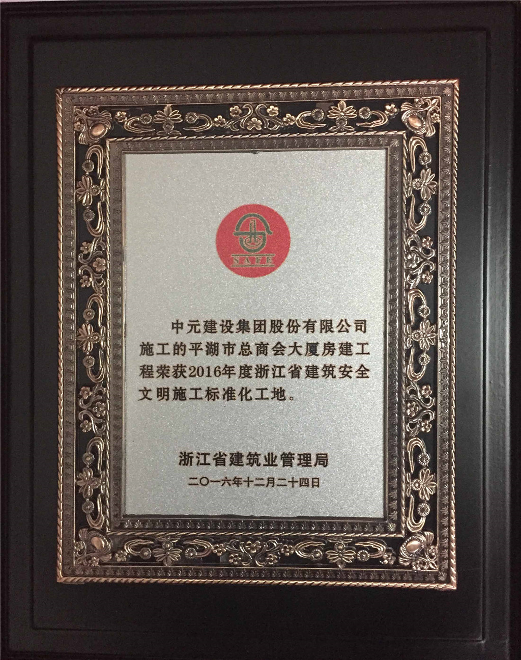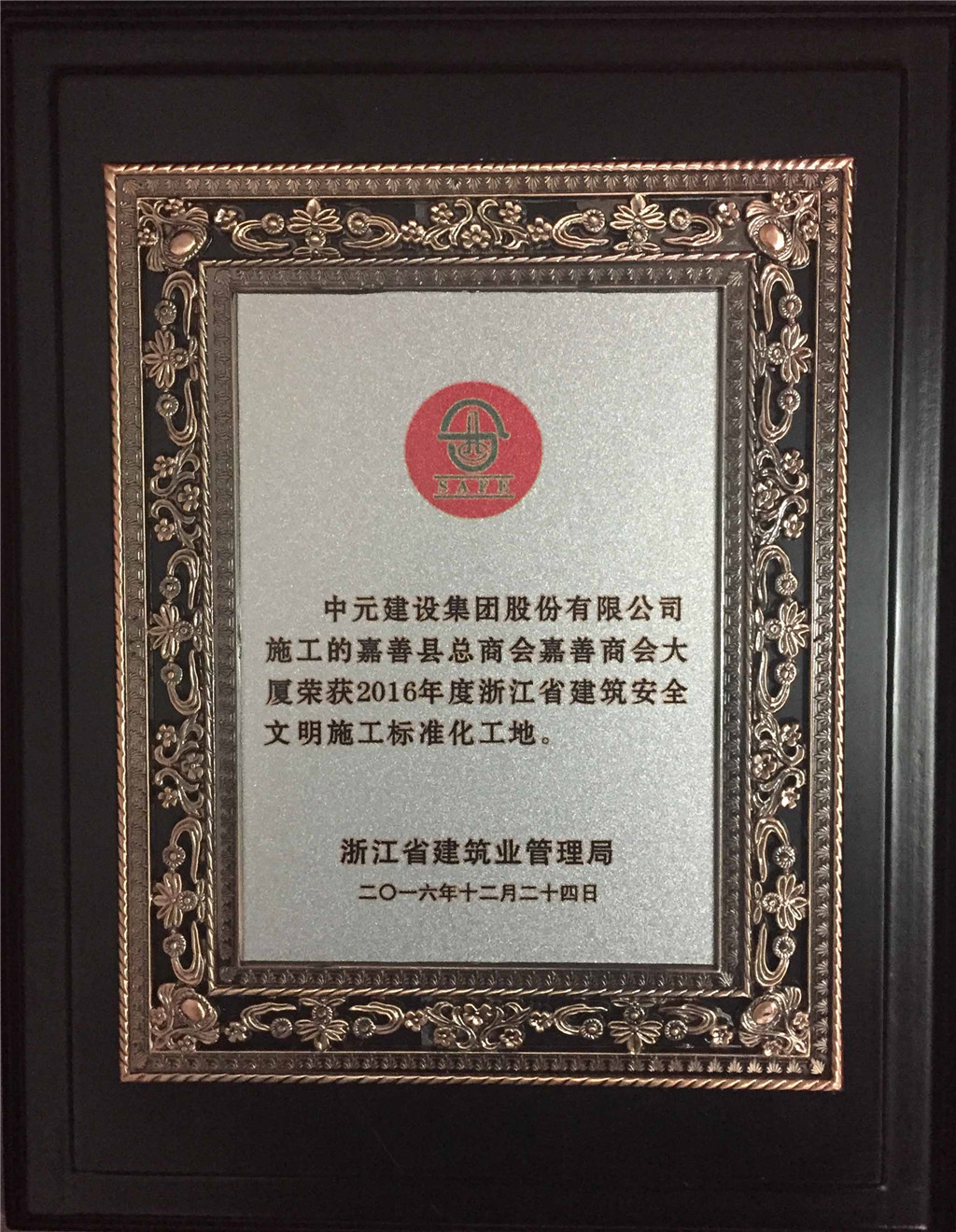 2016年度浙江省建筑安全文明施工标准化工地嘉善县总商会大厦