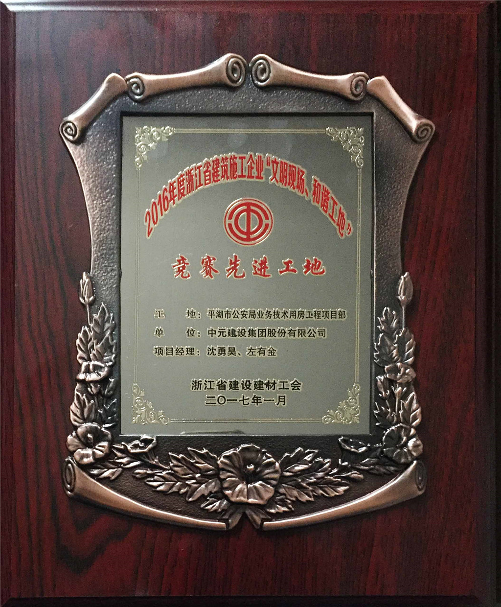 2016年度浙江省建筑施工企业“文明现场、和谐工地”
