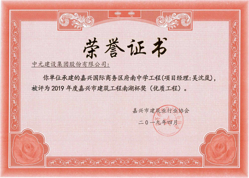 2019年度嘉兴市建筑工程南湖杯奖(优质工程)嘉兴国际商务区府南中学工程