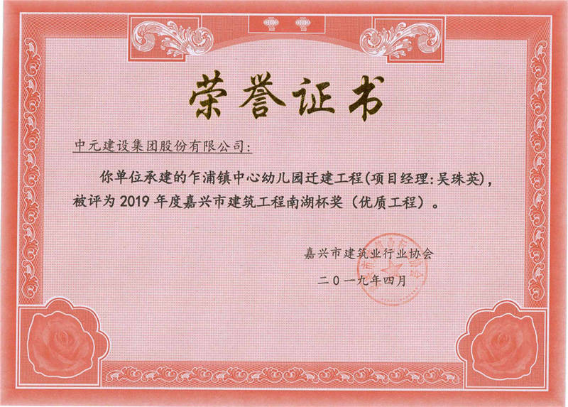 2019年度嘉兴市建筑工程南湖杯奖(优质工程)乍浦镇中心幼儿园迁建工程