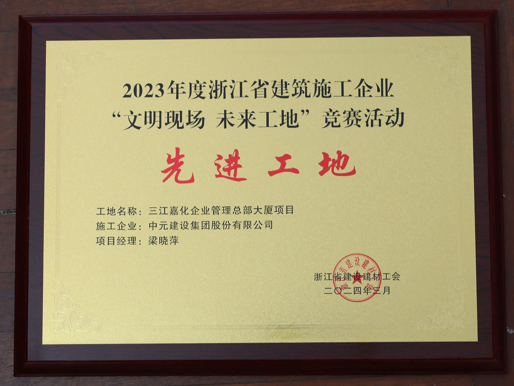 2023年度浙江省建筑施工企业“文明现场、未来工地”竟赛先进工地(三江嘉化企业管理总部大厦项目)