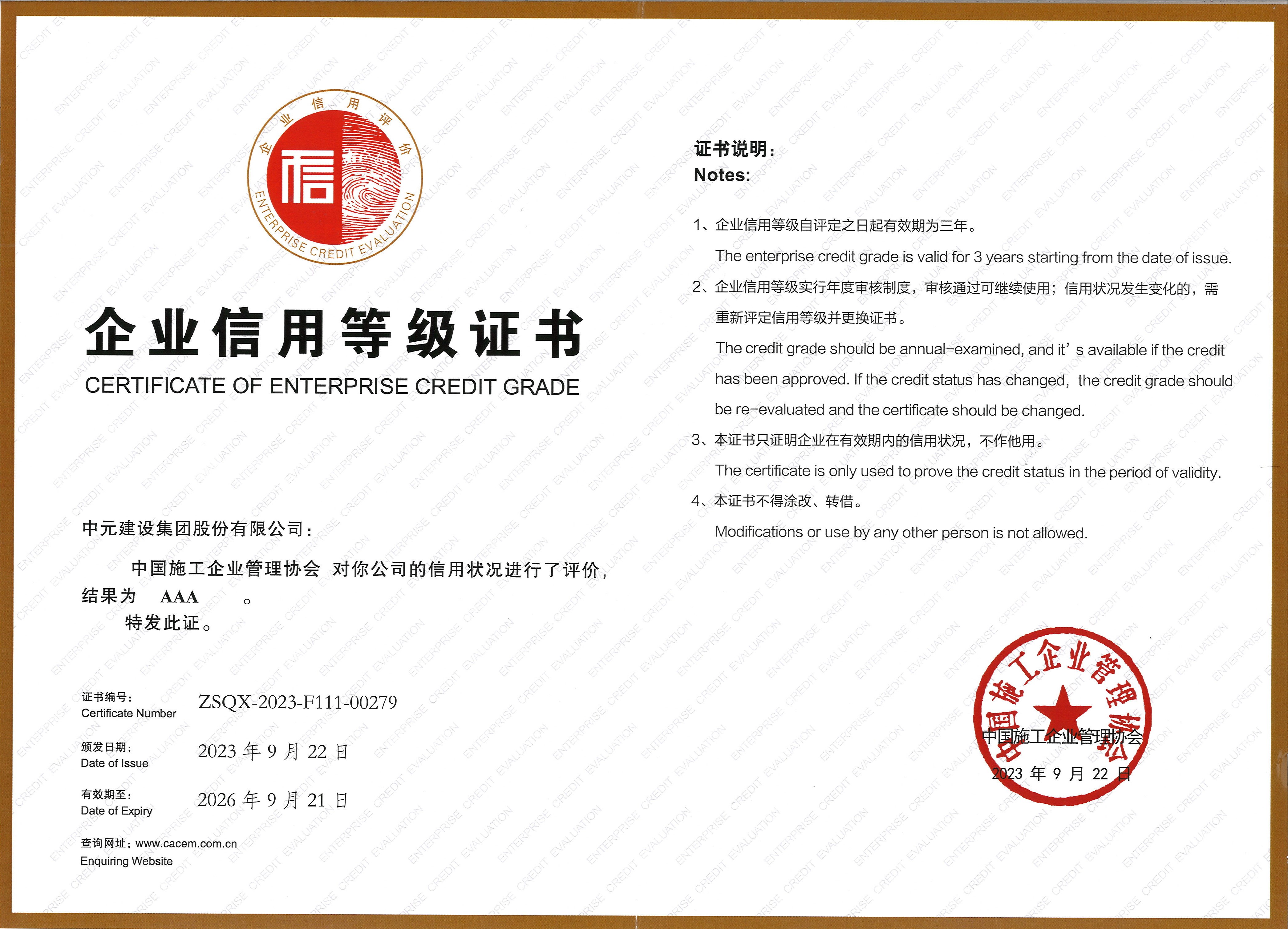 2023年度第一批工程建设企业信用评价结果(AAA)